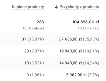 | Przychód z OTO | 25 368 zł (200 zakupów) |